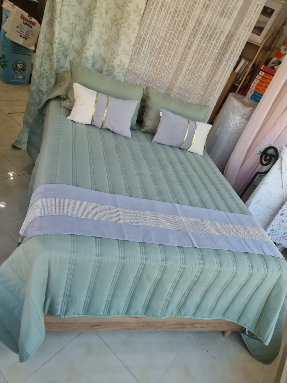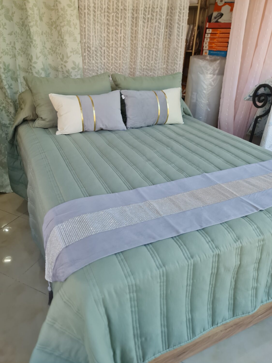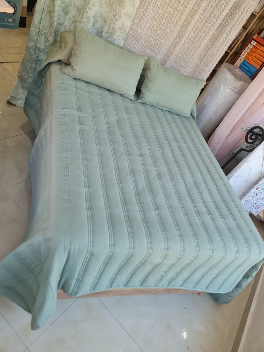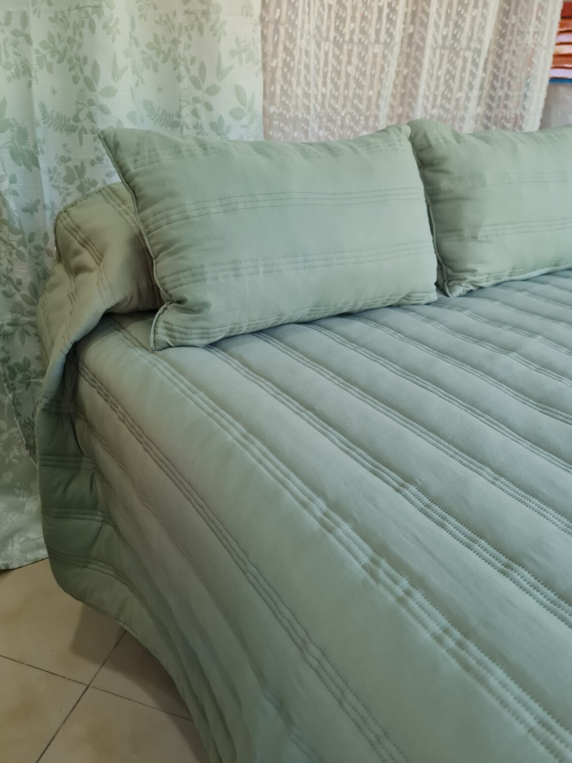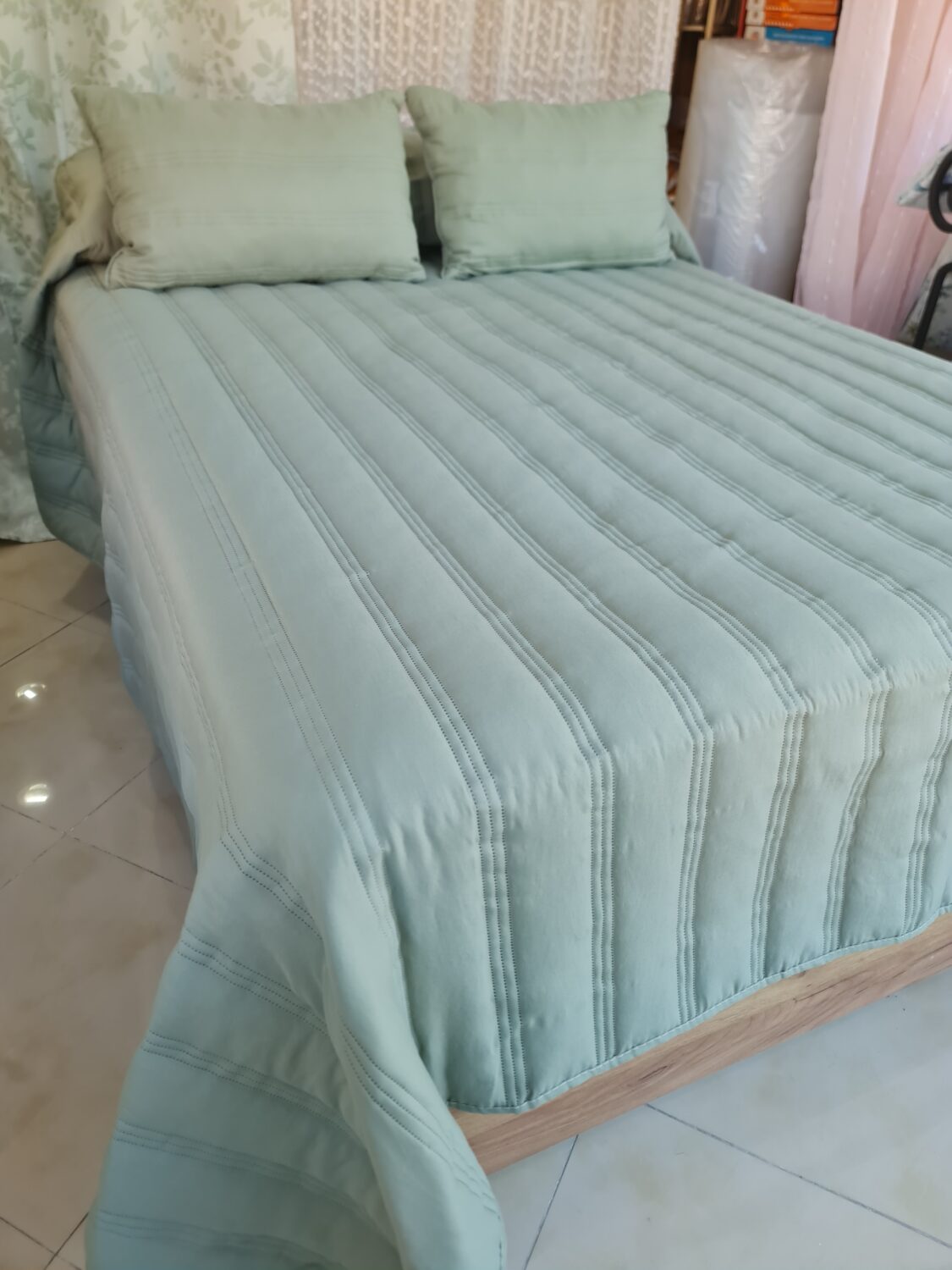 Colcha Verano Francesca verde cama 135-150 cm Incluye 2 cojines rellenos